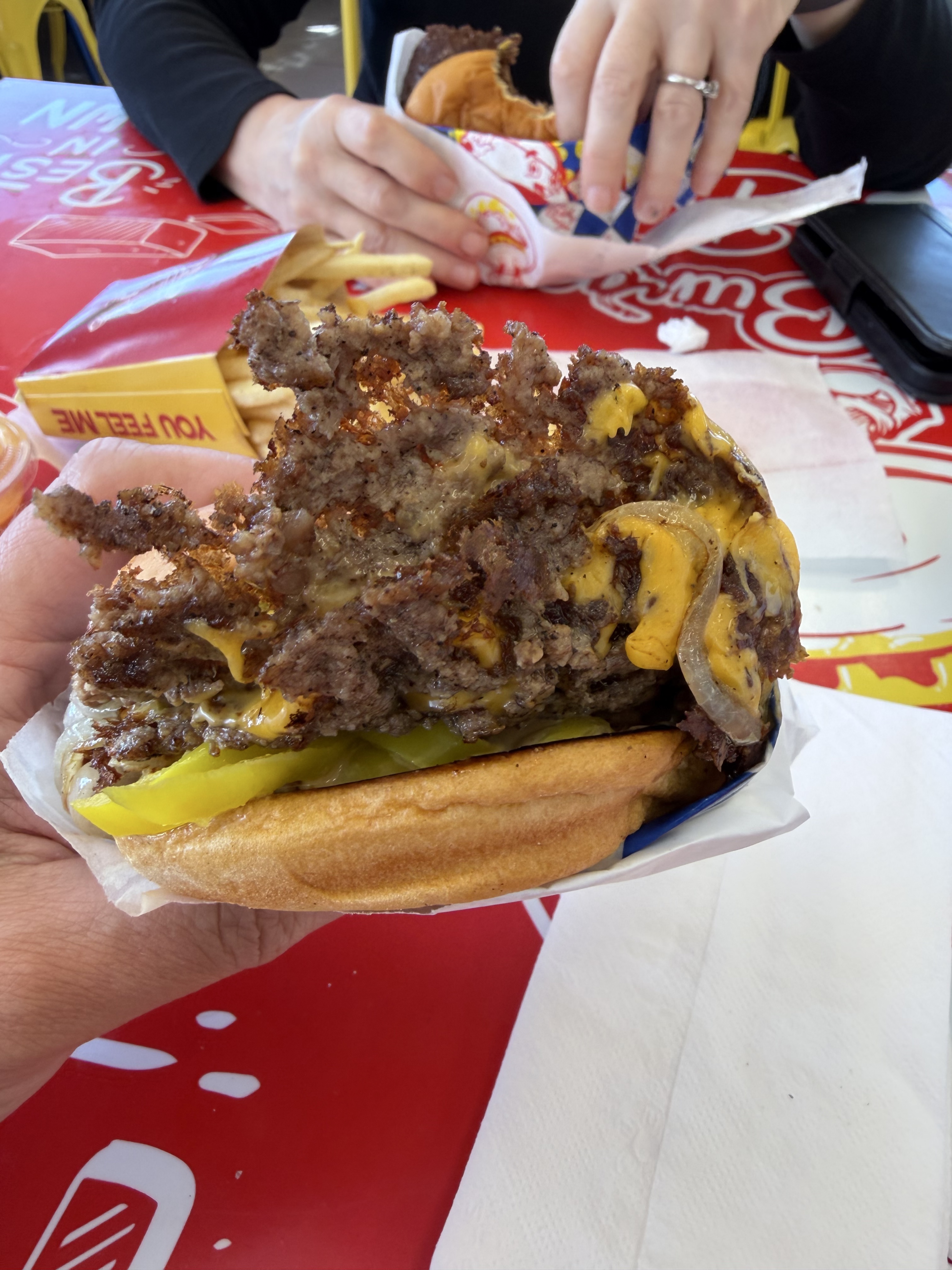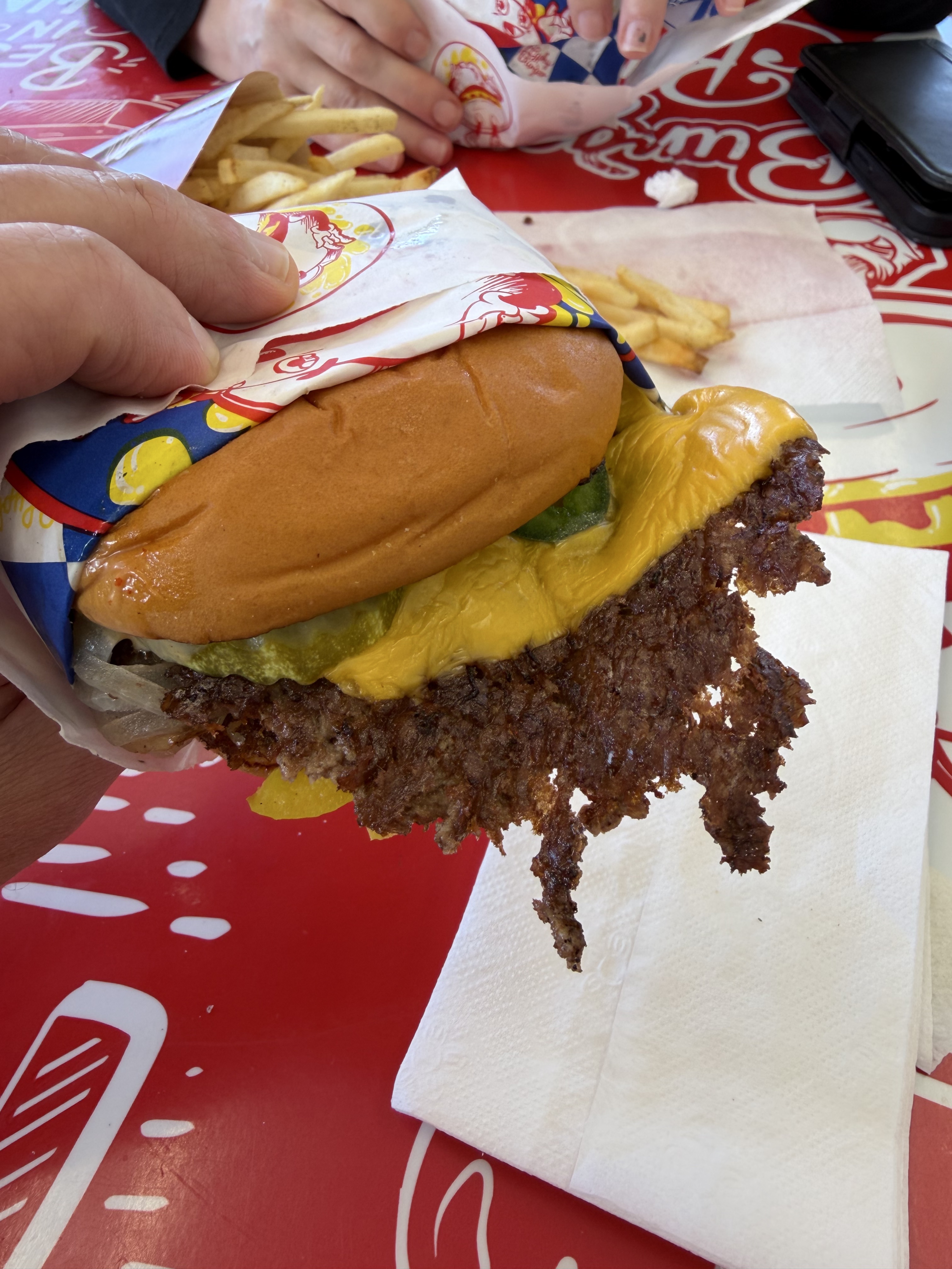 "Fairly new spot. Classic smash burgers. Not quite the amazing flavor profile of Headland’s but pretty damn good. "